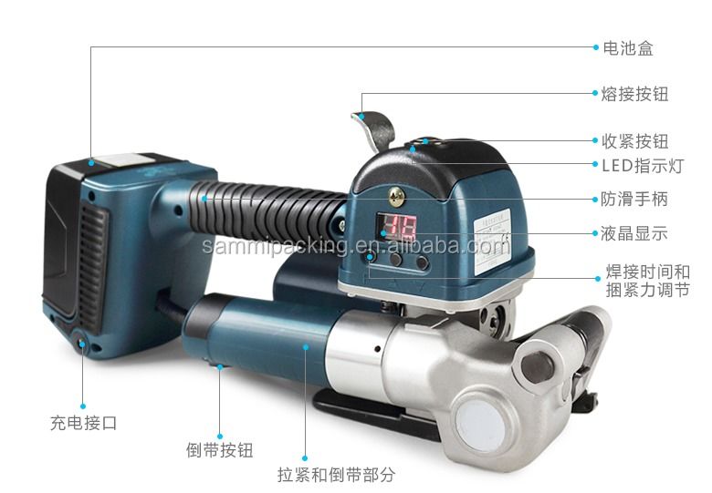 Ηλεκτρικό εργαλείο σφραγίσματος χρησιμοποιείται για την σφραγίσματα PET ή PP.Το χειροκίνητο φορητό ηλεκτρικό ρεύμα με ηλεκτρική μπαταρία μπορεί να συνδυάσει τις νέες και παλιές ζώνες απευθείας και να εξοικονομήσει χρόνο φορέωσης και φόρτωσης εργασίαςΕίναι κατάλληλα για τη συσκευασία του χάλυβα, του ξύλου, του τούβλου, των ινών κλπ. Χρησιμοποιούνται ευρέως στη βιομηχανία χαρτιού, της βιομηχανίας αλουμινίου, της βιομηχανίας χάλυβα, του ξύλου, της ξύλινης συσκευασίας, της χημικής ινών, του βαμβακιού,καπνό, χημική, μεταλλική βιομηχανία.