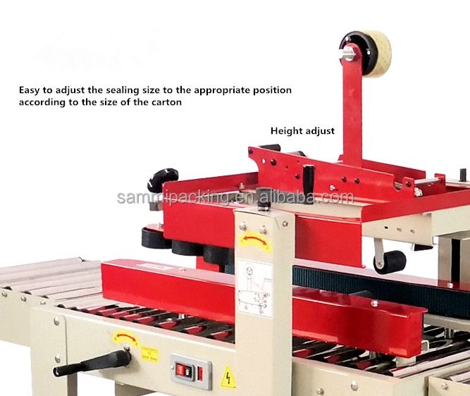 2.Διορθώστε το ύψος και το πλάτος σφράγισης με το χέρι ανάλογα με το μέγεθος του χαρτοκιβωτίου, στη συνέχεια τοποθετήστε το χαρτοκιβώτιο στο τραπέζι εργασίας και το χαρτοκιβώτιο θα μεταδοθεί και θα σφραγισθεί με ταινία αυτόματα ταυτόχρονα.